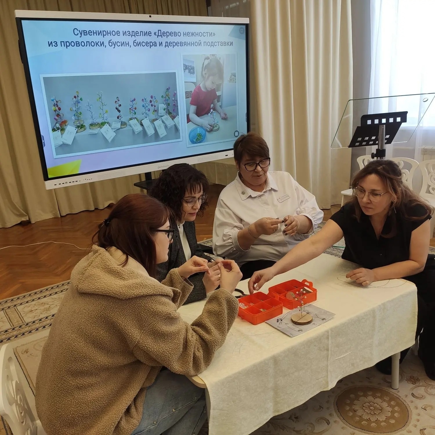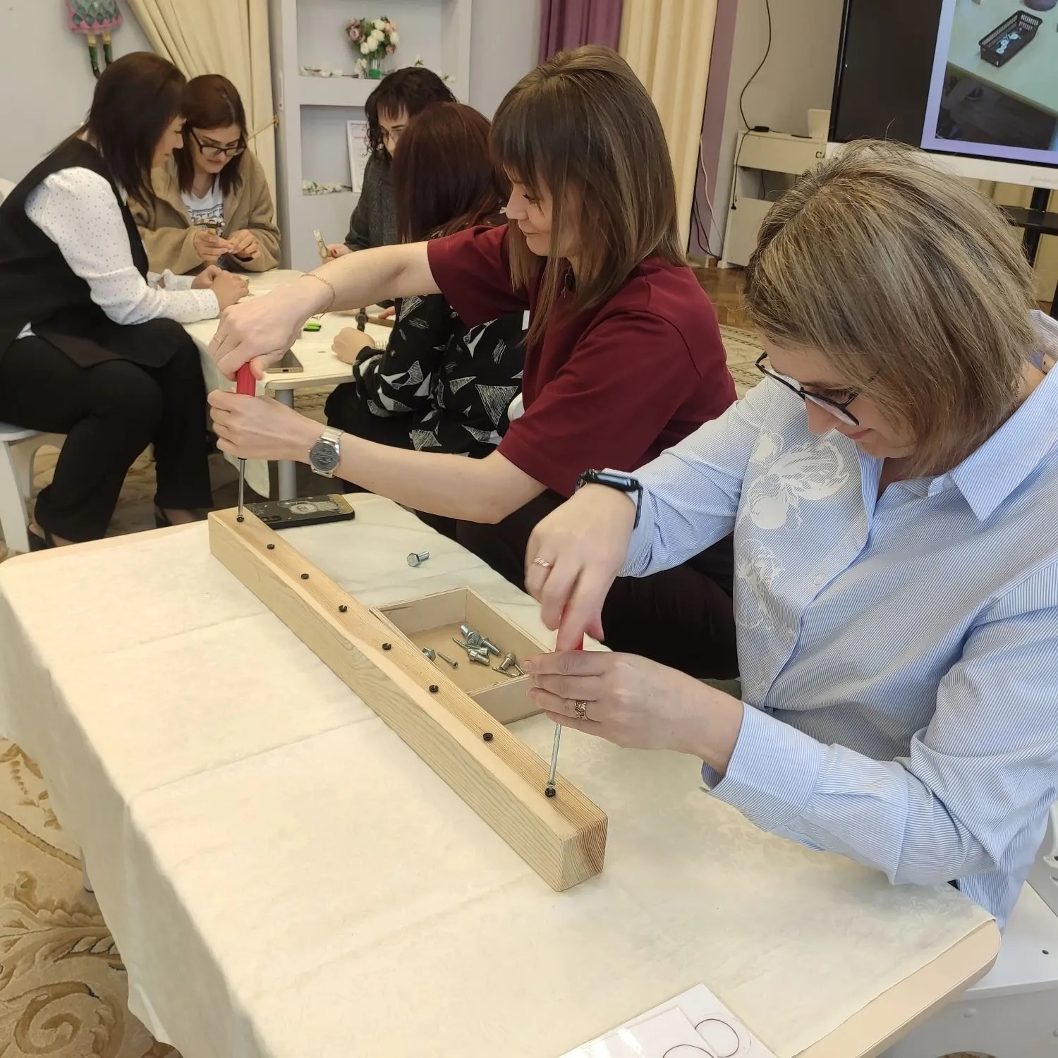 В рамках мероприятия педагоги представили свои оригинальные методические разработки по организации учебного процесса, используя для этого уникальные мастерские «Город мастеров», расположенные непосредственно в детских группах. Участники мероприятия совершили обзорную экскурсию по детскому саду, посетив мастерские «Стружка», «Волшебная нить», мультстудию «Мультяшкино» и ювелирно-сувенирный салон «Затейный». Они также получили возможность не только увидеть, но и лично поучаствовать в мастер-классах столярной мастерской и ювелирно-сувенирного салона, изготовив сувениры на память. Формат мероприятия позволил участникам и найти новые идеи для совершенствования развивающей предметно-пространственной среды, и освоить новые методики, которые могут применять в своей деятельности.